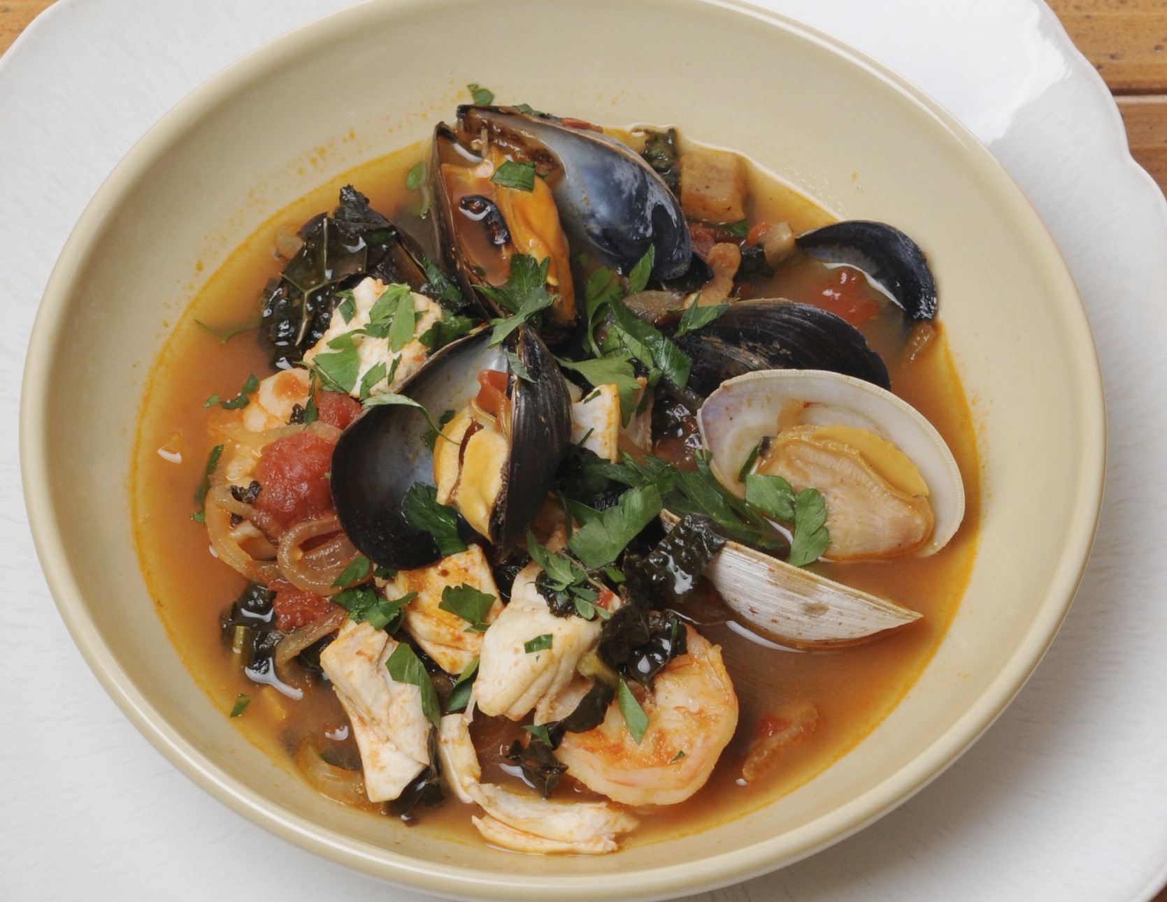 How to make seafood stew · sauté the garlic and onion until soft. Cioppino is a comforting san franciscan seafood stew filled with shrimp, clams, mussels, white fish, and crab legs simmered in a rich broth . · add the chorizo, tomatoes, wine, bay leaf, ¼ cup of the parsley, and simmer for five minutes. Seasoned with oregano, thyme and basil. A classic seafood stew with a little bit of everything from the sea.